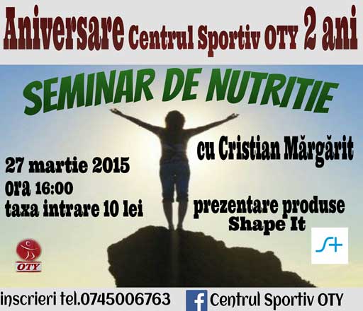 Seminar de nutritie, 27 martie, ora 17.00, Adjud, Centrul Sportiv OTY