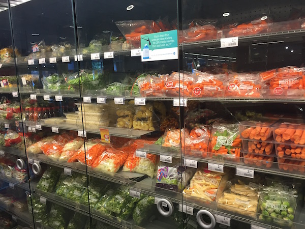 E clar ca de la noi nu este. La noi raftul cu legume si salate la punga este mult mai mic. Se numeste diviziunea muncii si este secretul dezvoltarii societatii omenesti. Poza e din marketul unui orasel. Sa nu-i zic “satuc”. Eram in cantonament in Olanda cu Benny Adegbuyi pentru un turneu de kickboxing (5 noiembrie, Glory, Nisa) am mers “pe regim”, chiar daca este la “plus”. Adica nu are limita de greutate, ar putea fi ceva mai “gras”. Dar preferam sa aiba un strat de grasime mai mic. Si sa se recupereze mai repede, sa aiba performanta mai buna. Prin aport de antioxidanti, fitonutrienti cu efect antiinflamator, prin alcalinizarea dietei. Asa ca includem in program si multe legume, salate, dupa cum se poate vedea.