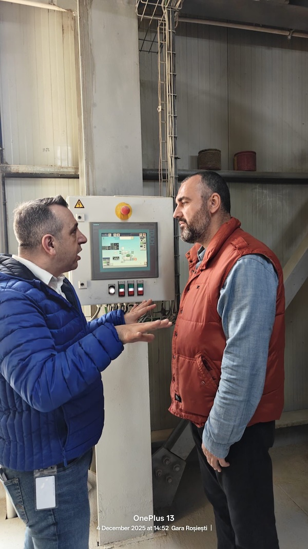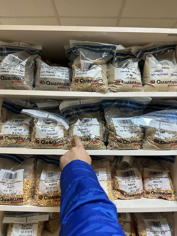 Am vizitat întâi FNC-ul (fabrica de nutrețuri). Ei produc nutrețuri în principal pentru fermele proprii dar o parte merge și către alte ferme sau către persoane fizice (se pot cumpăra la sac). Sunt, în principal, un amestec de cereale și soia sub diverse forme, plus câțiva aditivi de tip aminoacizi, vitamine (inclusiv vitamina B12), minerale etc. Aici facem precizarea: “aditiv” nu înseamnă ceva rău, de exemplu, aminoacizii sunt componente ale proteinelor, chiar dacă persoanelor needucate le poate suna ciudat cuvântul.