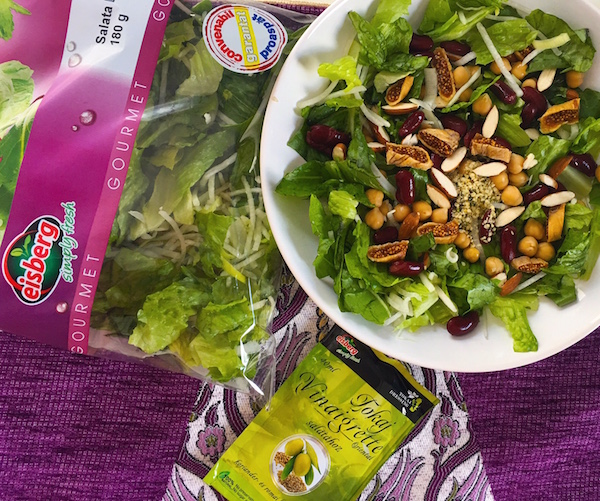 Salata din Gradina de la Eisberg, cu ficatei si sos de zmeura cu otet din vin de Tokaj